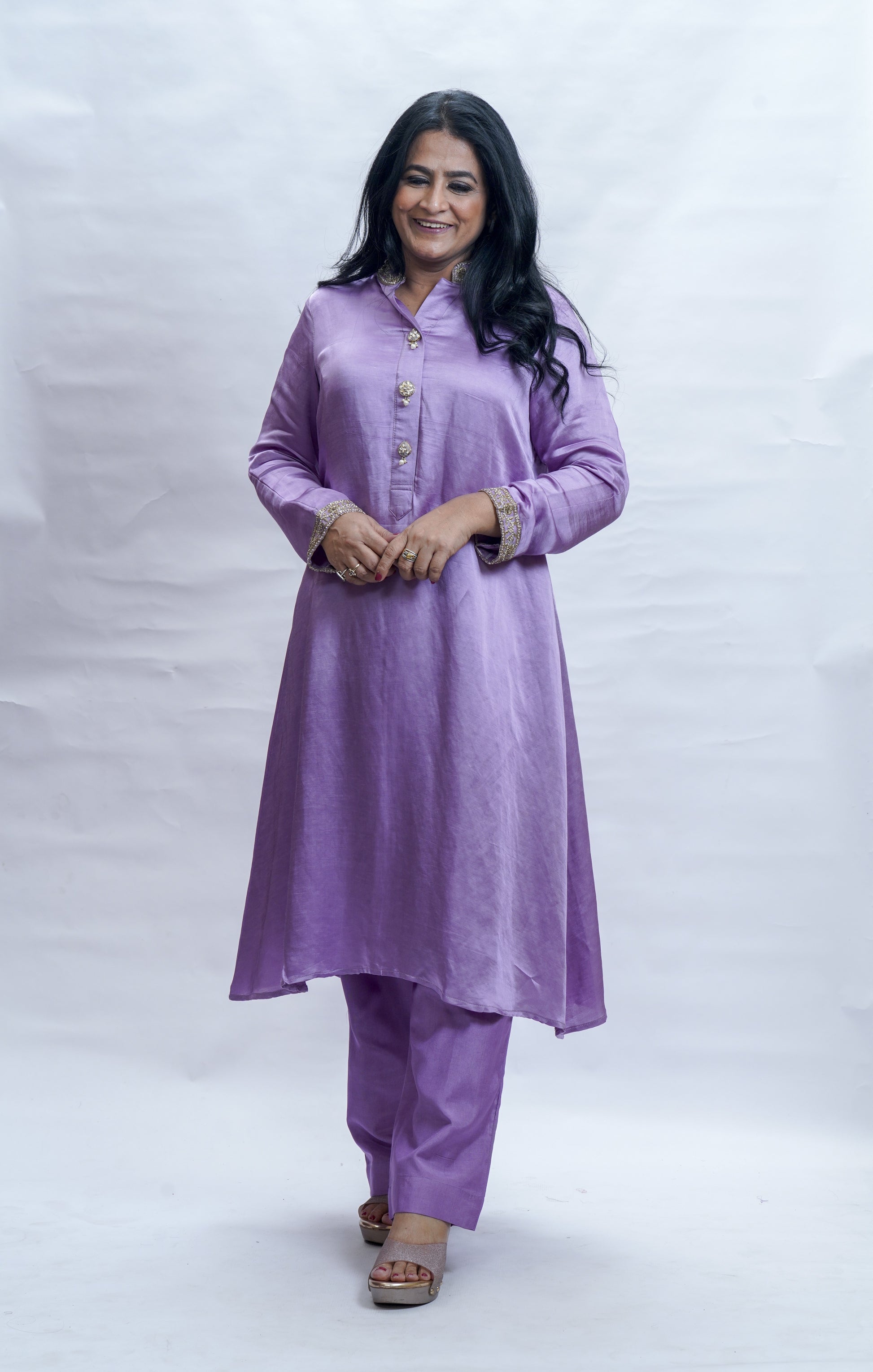 Elevate your festive style with this elegant two-piece set crafted in pure, premium fabric. The ensemble features a beautifully tailored kurta paired with matching pants, both designed for comfort and grace. Intricately adorned with heavy embroidery, the outfit blends traditional craftsmanship with timeless sophistication — perfect for festive gatherings, celebrations, or special occasions.