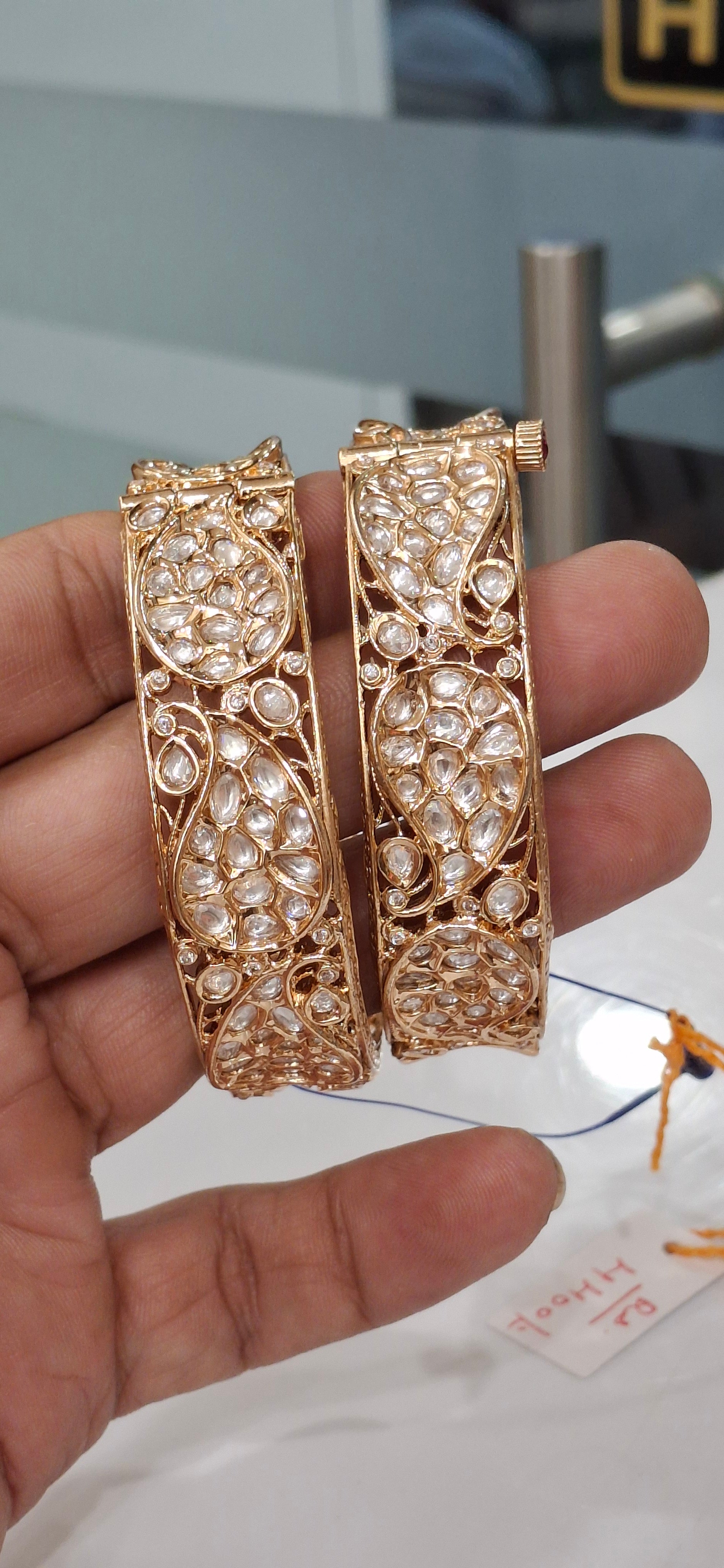 An elegant fusion of tradition and grace, this Kundan with Moti Kada is a timeless piece designed to elevate your festive and bridal ensembles. Featuring hand-set Kundan stones paired with delicate pearls (moti), the kada strikes the perfect balance between opulence and subtlety.